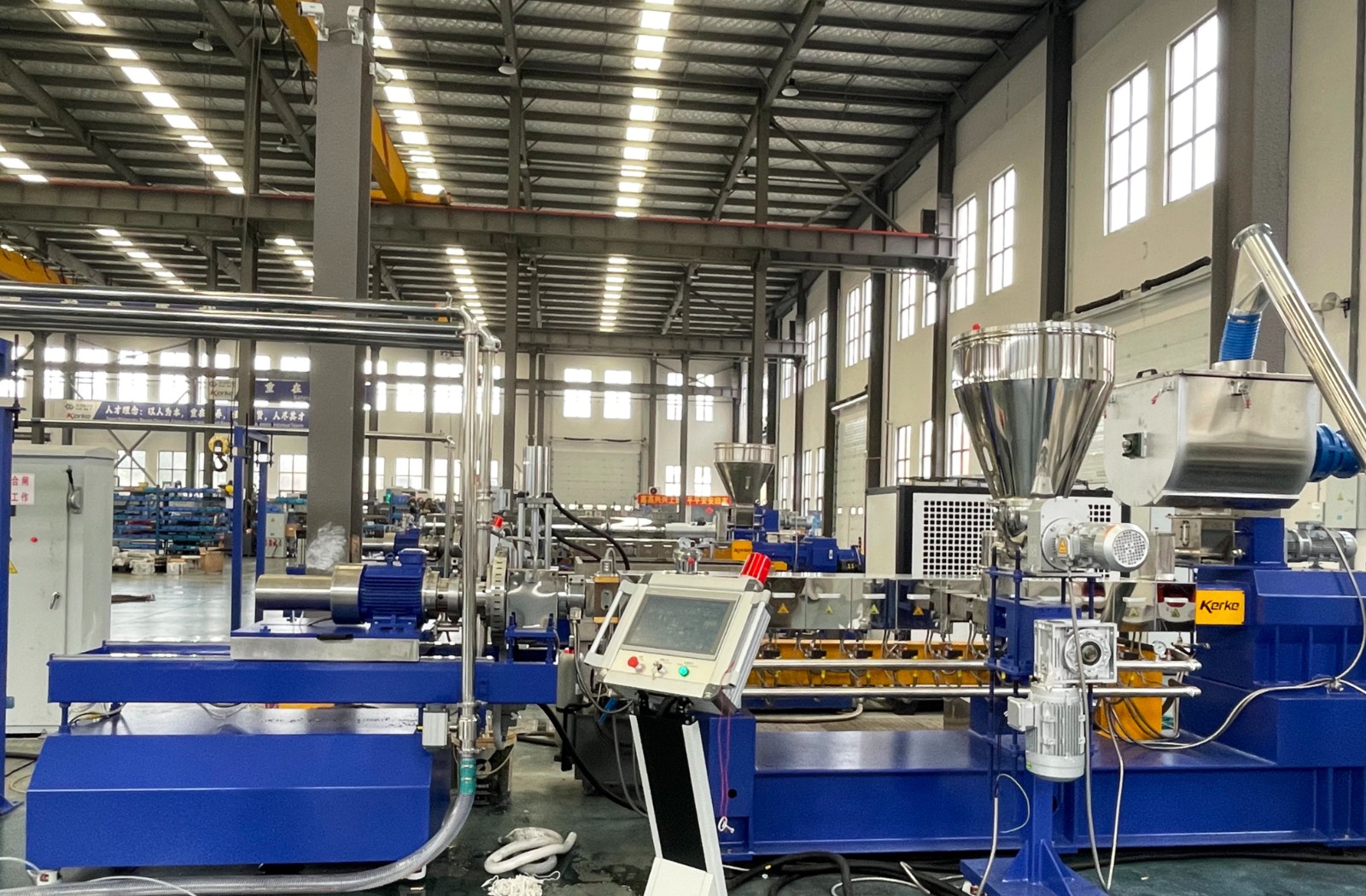 KTE-52B 機型在長徑比設計、筒體換熱結構及自動化控制方面進行了全面優化,可廣泛適配塑料回收造粒、工程塑料改性、功能母粒等多領域生產需求,為客戶提供更高效、節能的塑料加工解決方案。
